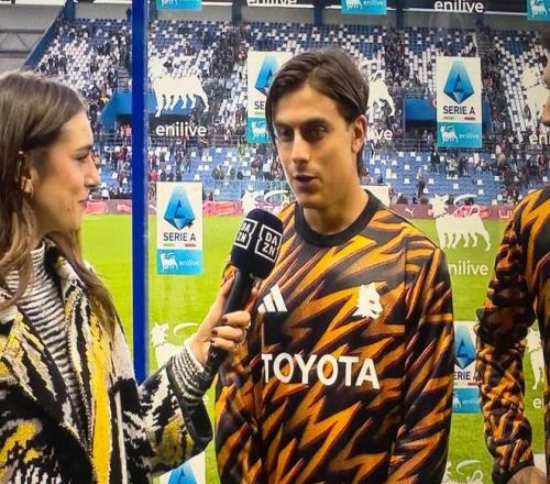 雷速体育10月27日宣 北京时间10月26日22:00,意甲第8轮,罗马客场1-0战胜萨索洛,本场比赛结束之后,为罗马打进制胜球的迪巴拉获得全场最佳球员并接受了DAZN的采访。